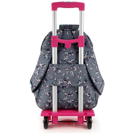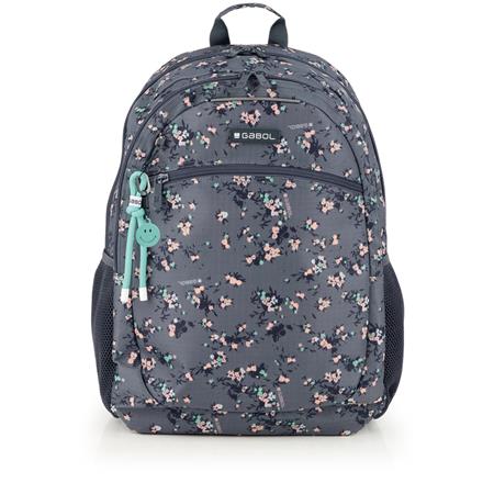 Hátizsák, iskolatáska, cipzáras, GABOL "Secret", szürke, virágmintás