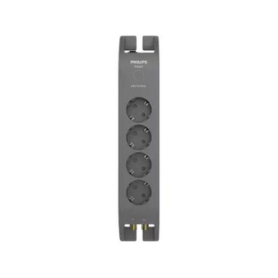 Elosztósor, 4 csatlakozóaljzat, túlfeszültség-védelemmel, 2 m kábel, PHILIPS, sötétszürke